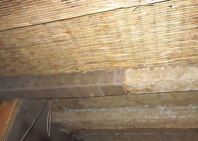 - Schilfrohr an der Decke und Lehmplatten an Deckenbalken dienen als Träger für Lehmausgleichsputz.